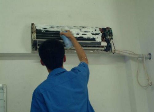 | 哈尔滨市空调维修师傅给哈尔滨市用户上门维修清洗空调。 |